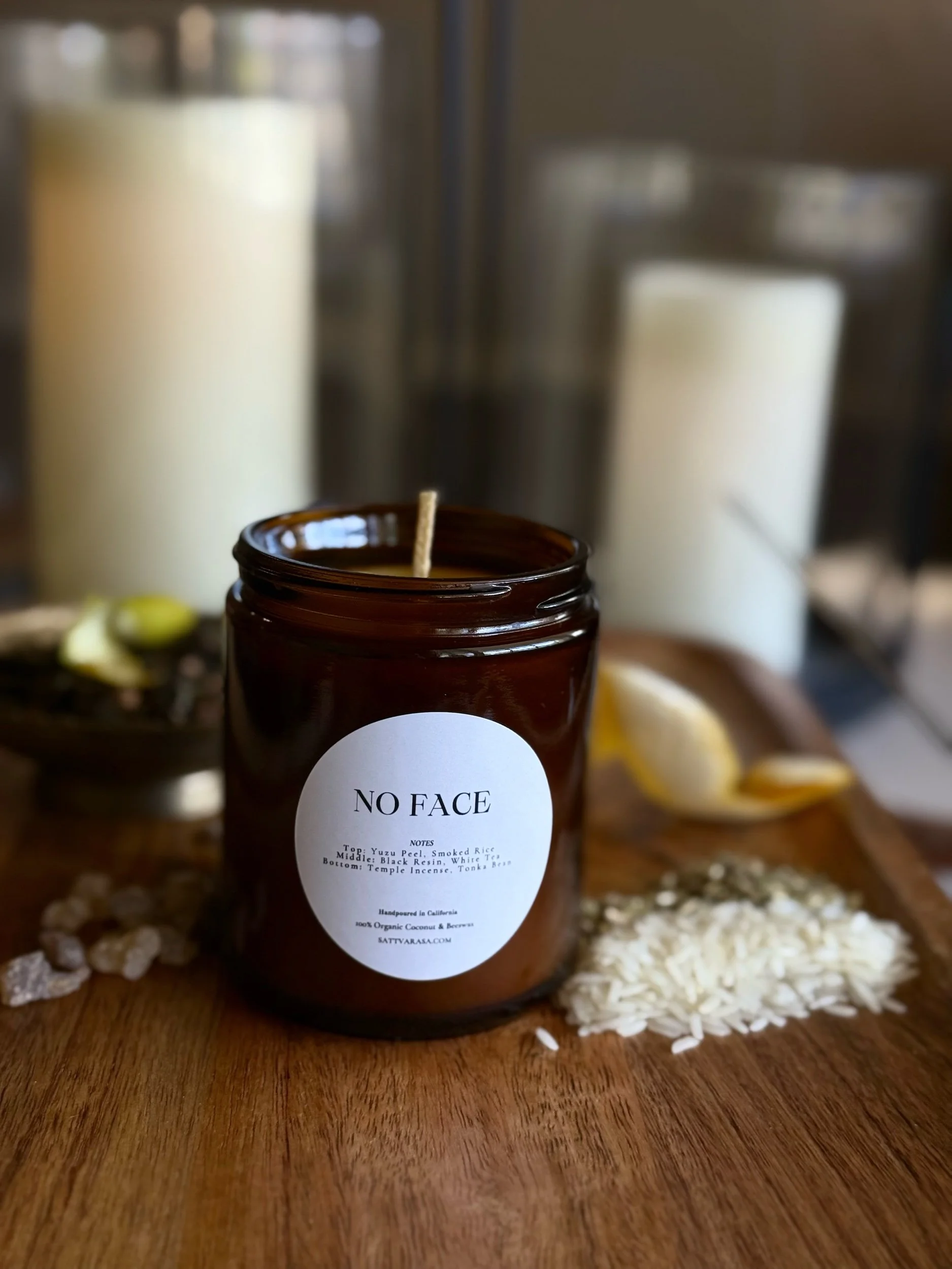 Notes: A layered fragrance of bright yuzu peel and smoked rice unfolding into white tea and deep black resin, settling into temple incense and tonka bean.